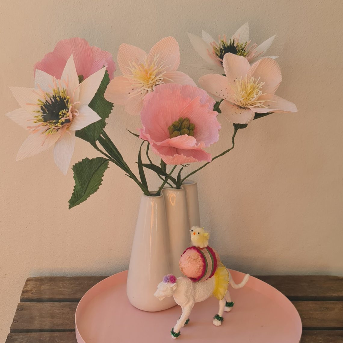 Buketten er håndlavet I 180g Italiensk kvalitets creppapir. Luksus der holder længe.
