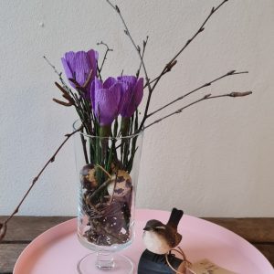3 stk. fine krokus I den skønneste lilla. Her er de vist i en lille borddekoration, men har mange andre anvendelses muligheder.