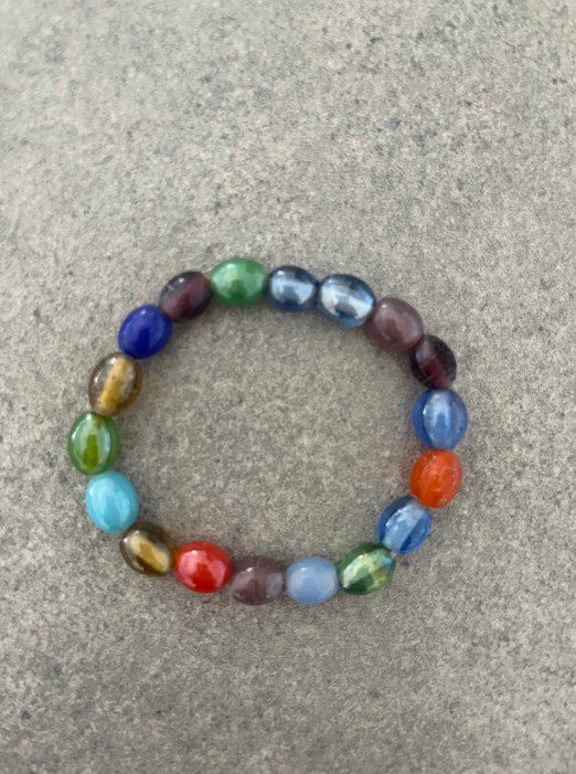 Ferskvands perler i farvede toner, stærk elastiksnor for fleksibel pasform.