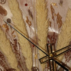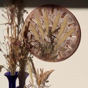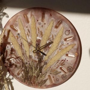 Væguret er lavet af tørrede blomster og epoxyharpiks.