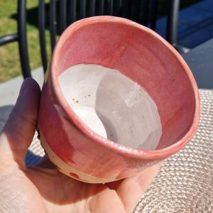 Smukt håndlavet krus i en blød lyserød nuance, der tilfører et varmt og feminint udtryk.