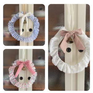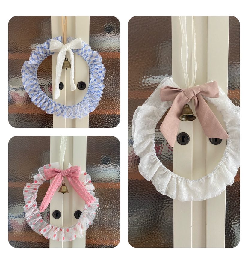 Fine kranse til at hænge på døren eller andre steder i hjemmet. Ca 25 cm med klokke og sløjfe.