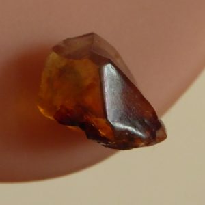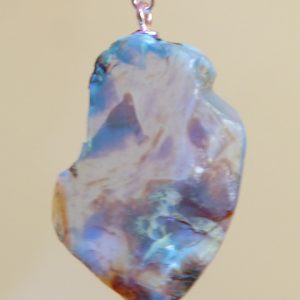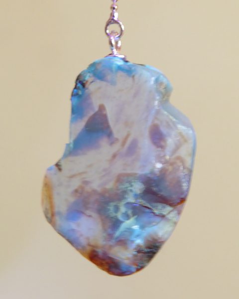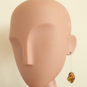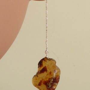 Blåt rav får ved UV-lys f.eks fra udendørs sollys et blåt skær – deraf navnet. Dette asymetriske sæt ørestikker består af en ca. 2½ cm skive, hvor den naturlige brudflade er bevaret på forsiden hængende i en 4 cm lang kæde, og et knap ca. 1cm stort brudstykke monteret direkte på stikken. To af billederne er taget med lys fra en ravlygte.