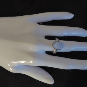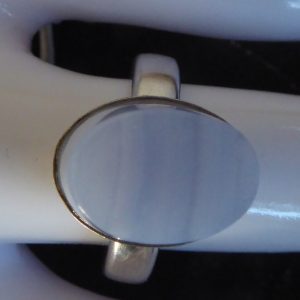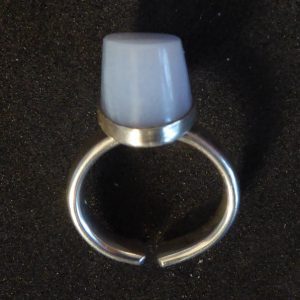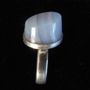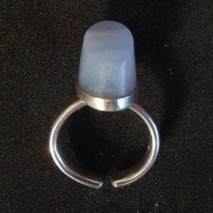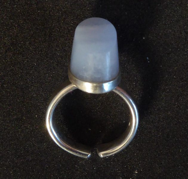 En høj ring med én skrå facet i blondeagat. Ringen er åben og kan justeres lidt.