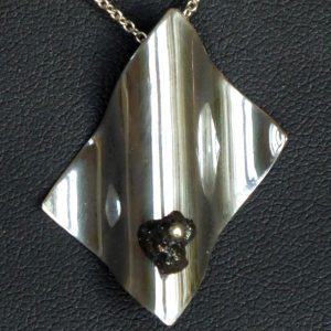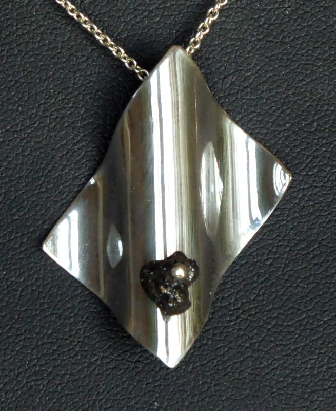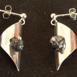 Sort rådiamant på knap 1 ct. er monteret på en bølget sølvplade. Højde 32 mm bredde 24 mm. Passer til ørehængerne varenummer 209.