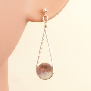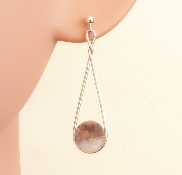 Øreringe med chermakit indeholdende strøg med rubiner – fra Grønland. Stenene er skåret af samme råsten som halsvedhænget 365 og halsvedhænget 361