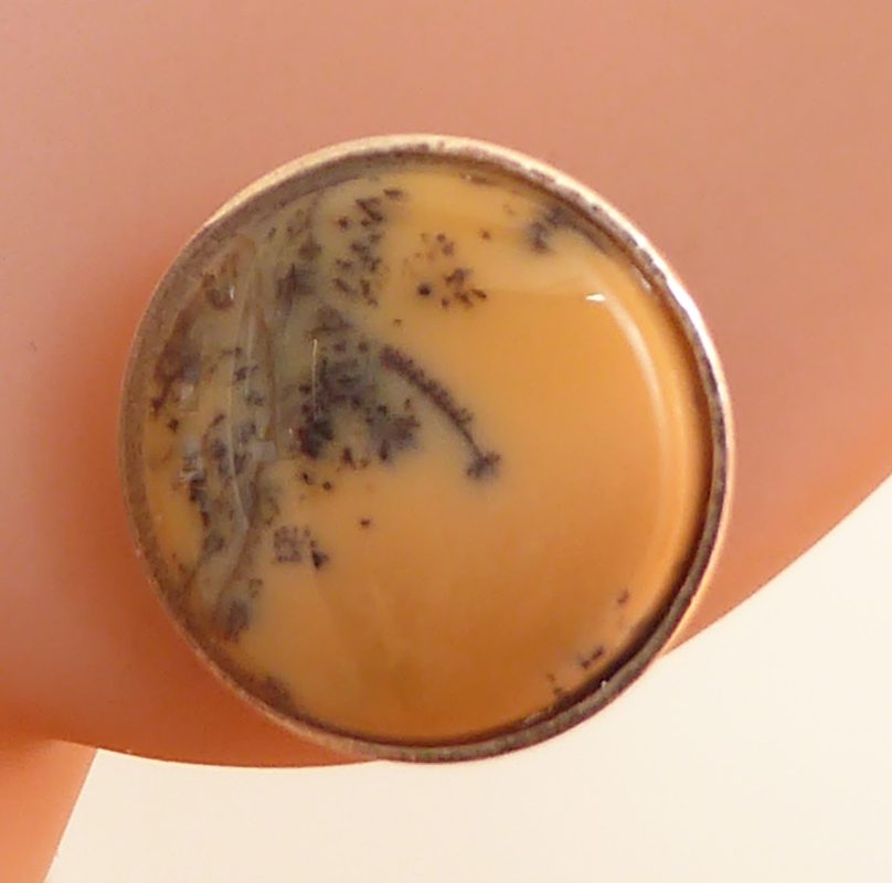 To stykker dendritopal her som ørestikker. De er skåret af den samme sten som halsvedhænget varenummer 495. Overfladen krummer kun lidt, så vægten er holdt nede på 1,5 g/stk.