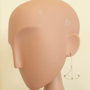 Tre lysegrå rådiamanter ophængt luftigt og spicet op med en lille guldkugle. Smykkerne måler 4 cm i bredden. De passer til halsvedhænget varenummer 309.