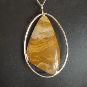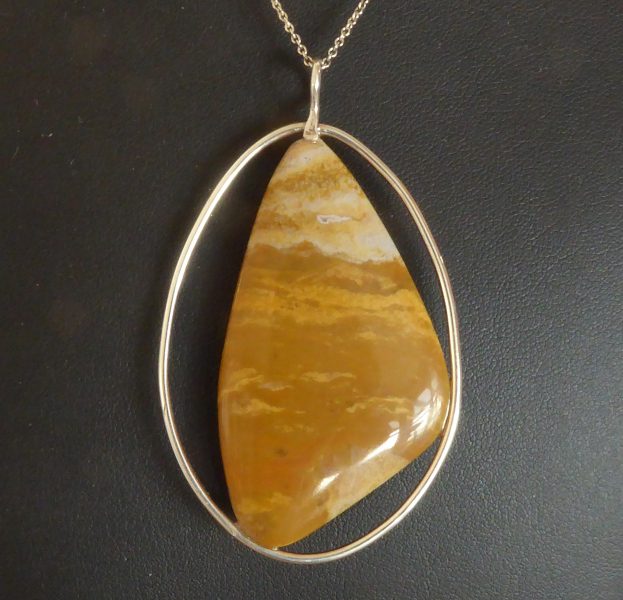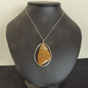 En lidt stor agat med et flot spil af gule og brune nuancer. Stenen måler 5½ cm i højden.