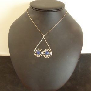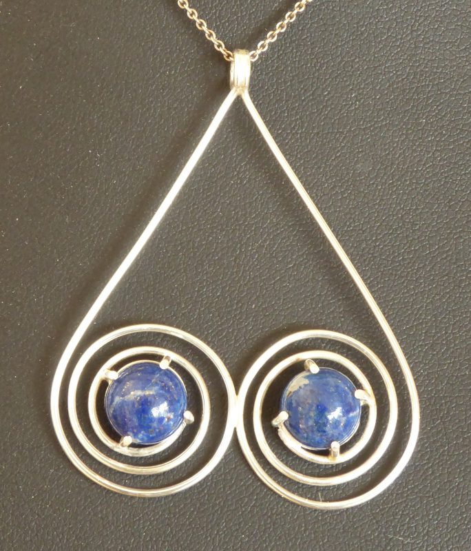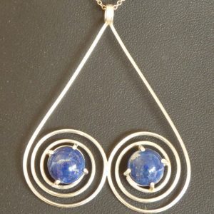 Halsvedhæng med to Lapis Lazuli i Argentium Sterlingsølv. Smykket måler 5½cm i højden og 4½ cm i bredden