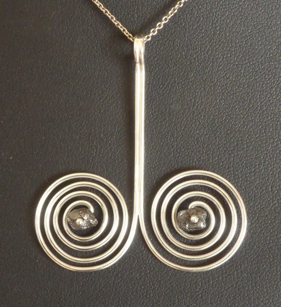 Halsvedhæng med spiralophængte sorte rådiamanter