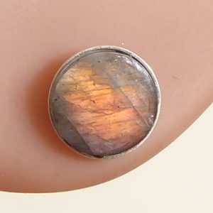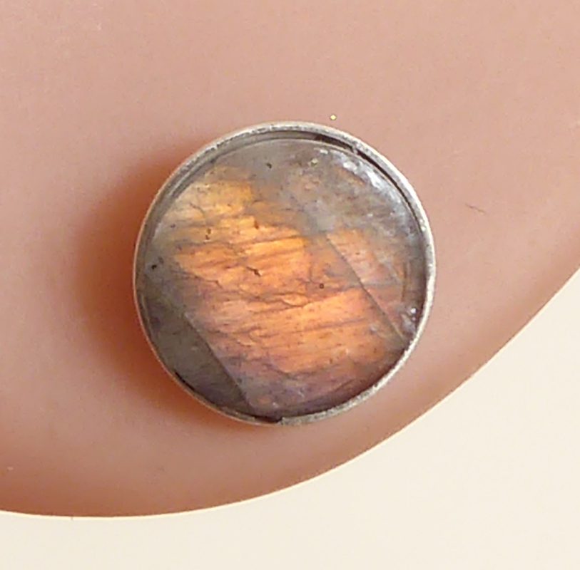 To stykker labradorit med flot gul/orange refleks når den rigtige vinkel rammes