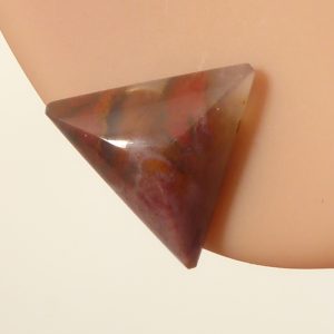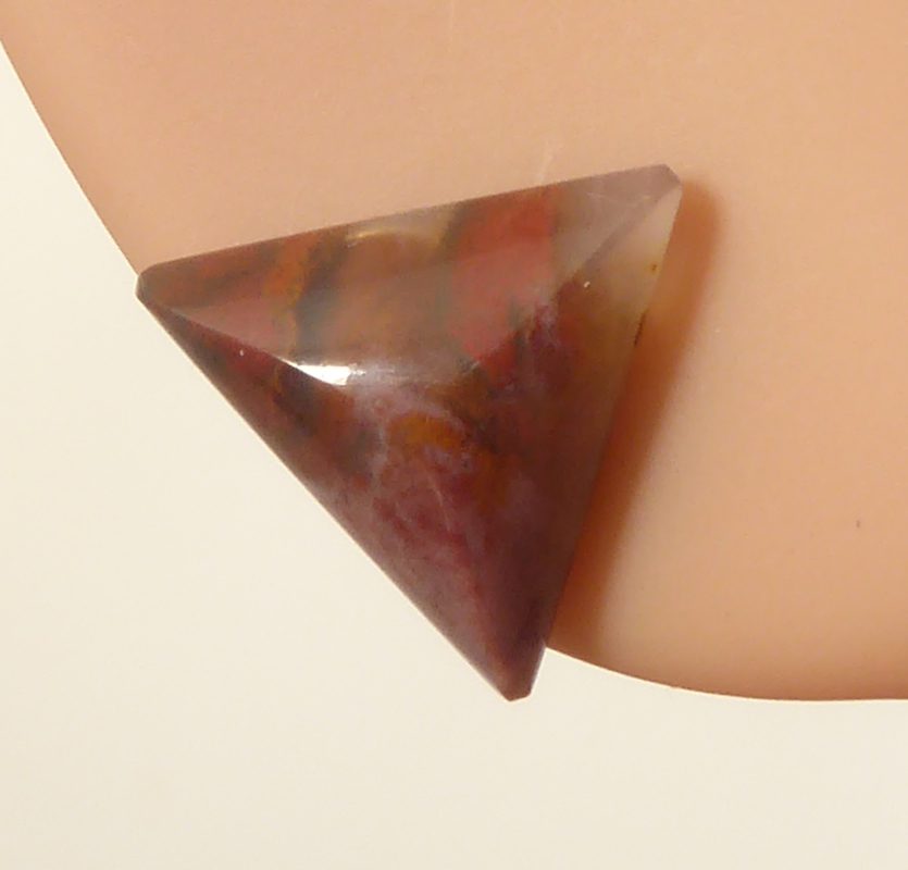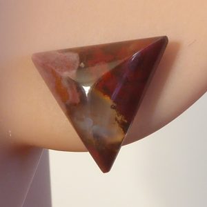 Denne råsten købte jeg for at være en jaspis, men det ligner mere en mosagat. Der er tydeligvis en glidende overgang mellem de to mikrokrystalinske kvarts. Øreringene er skåret af samme råsten som ringen varenummer 516