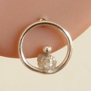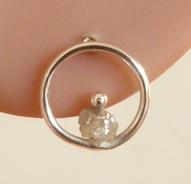 2 små rå grå diamanter i ringe af Argentium. Stikkerne er alm. sterling