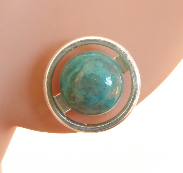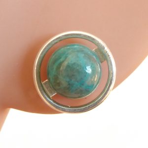 Der findes så mange pæne grønne sten. Disse øreringe er med to meget detailrige grøn-blå sten. Stenene måler 8½ mm.