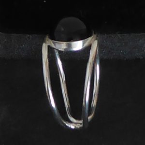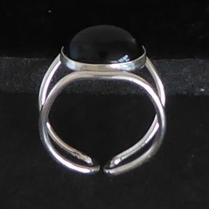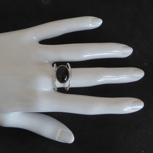 Onyx er en herlig sten at slibe. Her er den monteret på en åben ring, der kan udvides lidt. Ringen passer sammen med halsvedhænget nr. 520 og øreringene nr. 519.