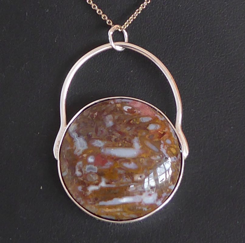 Et stykke meget detaljerigt rhyolit, her som halsvedhæng. Det er samme sten som øreringene nr. 515.