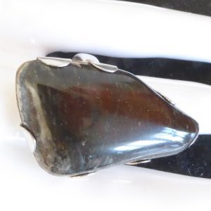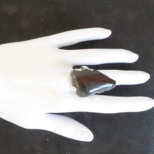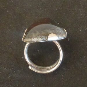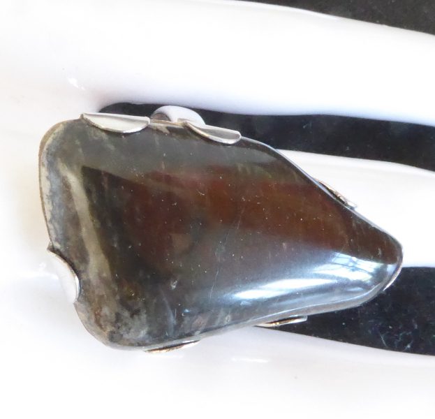 På min morgentur langs stranden i Frederikssund fandt jeg et stykke forstenet træ. Det kom der denne lidt store ring ud af.