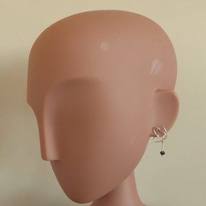 Sammenflettede hjerter med sort rådiamant - øreringe