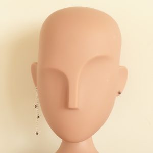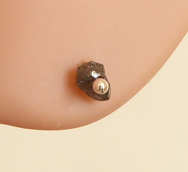 Et sæt med en sort rådiamant monteret på en tynd stikker (0,75mm) holdt fast af en sølvkugle. De kan bruges som de er eller som vist på billedet kombineres med andre øresmykker.