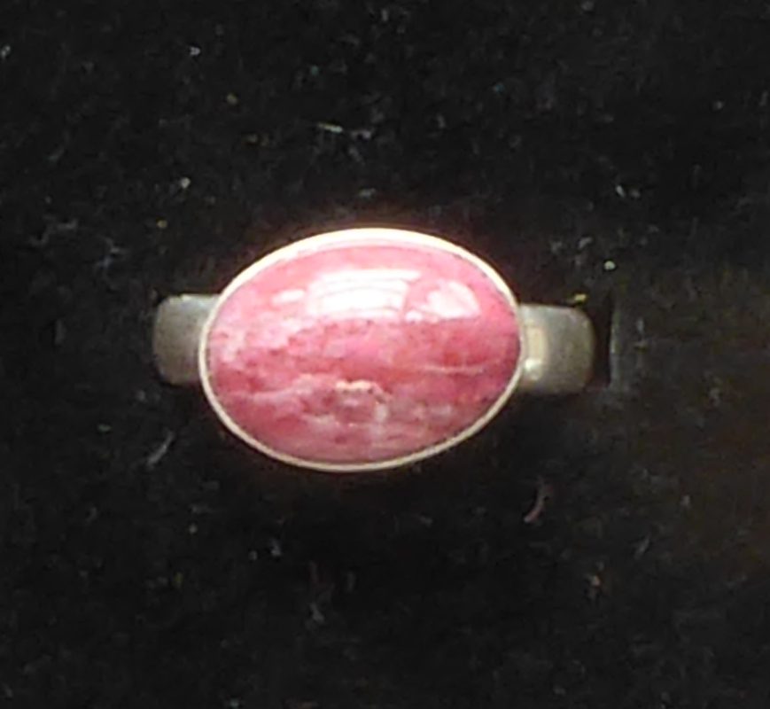 Her en fast ring med Thulit, som ikke kommer fra Thule, men Nordnorge. Dem, der navngav stenen havde ikke styr på geografien. Thulit er en manganholdig zoisit.