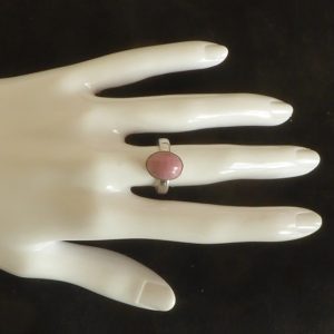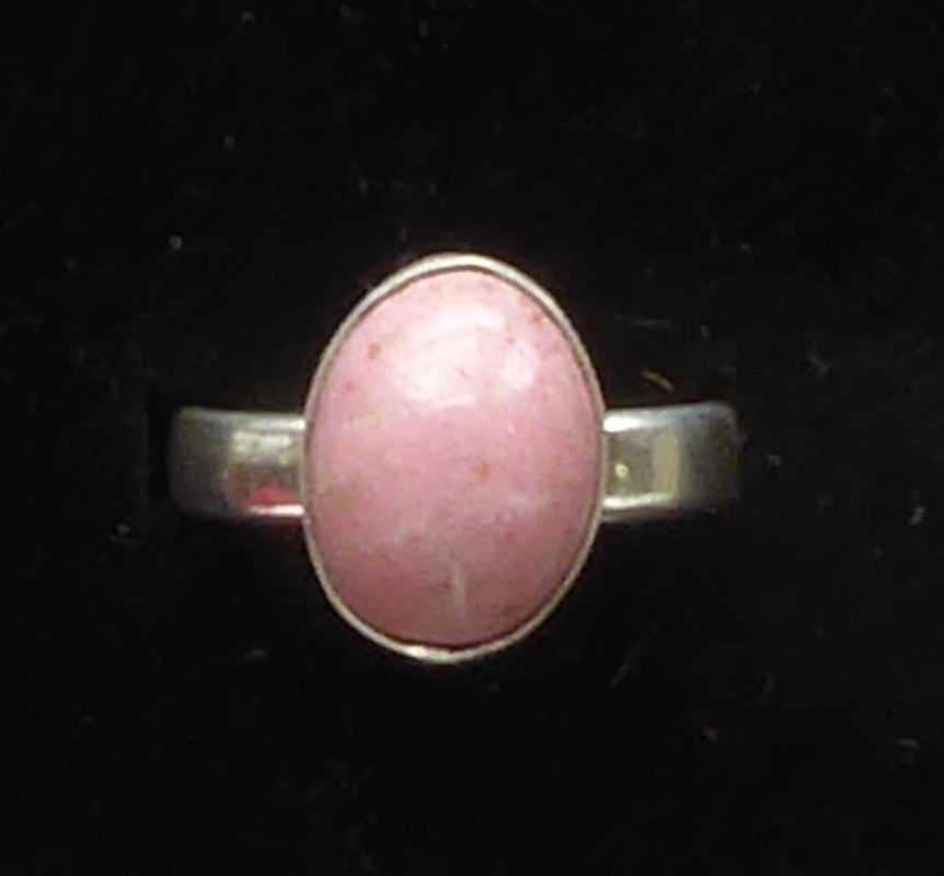 Her en fast ring med Thulit, som ikke kommer fra Thule, men fra Nordnorge. Dem, der navngav stenen, havde ikke styr på geografien. Thulit er en manganholdig zoisit.