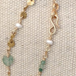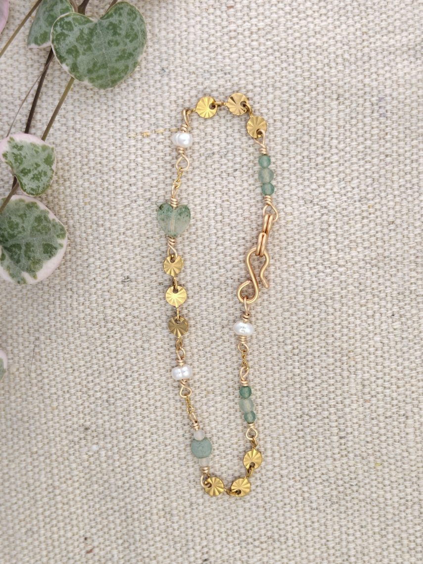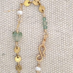 Armbånd med Aventurin, Månesten og Ferskvandsperler.