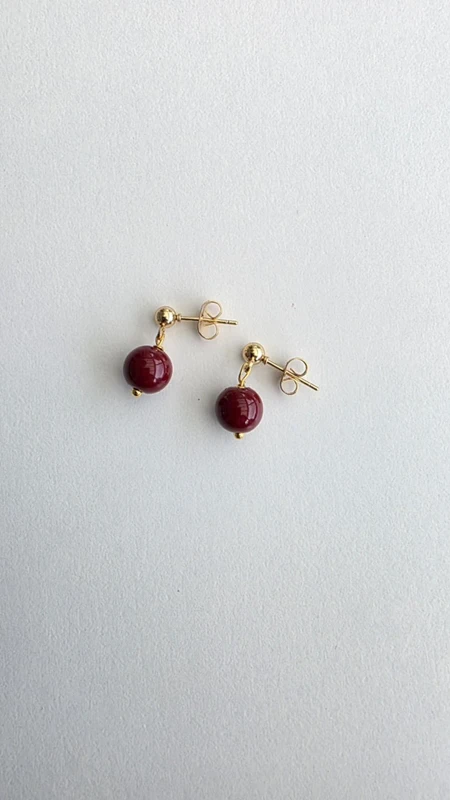 Forgyldte, håndlavede ørestikker med bordeaux perler