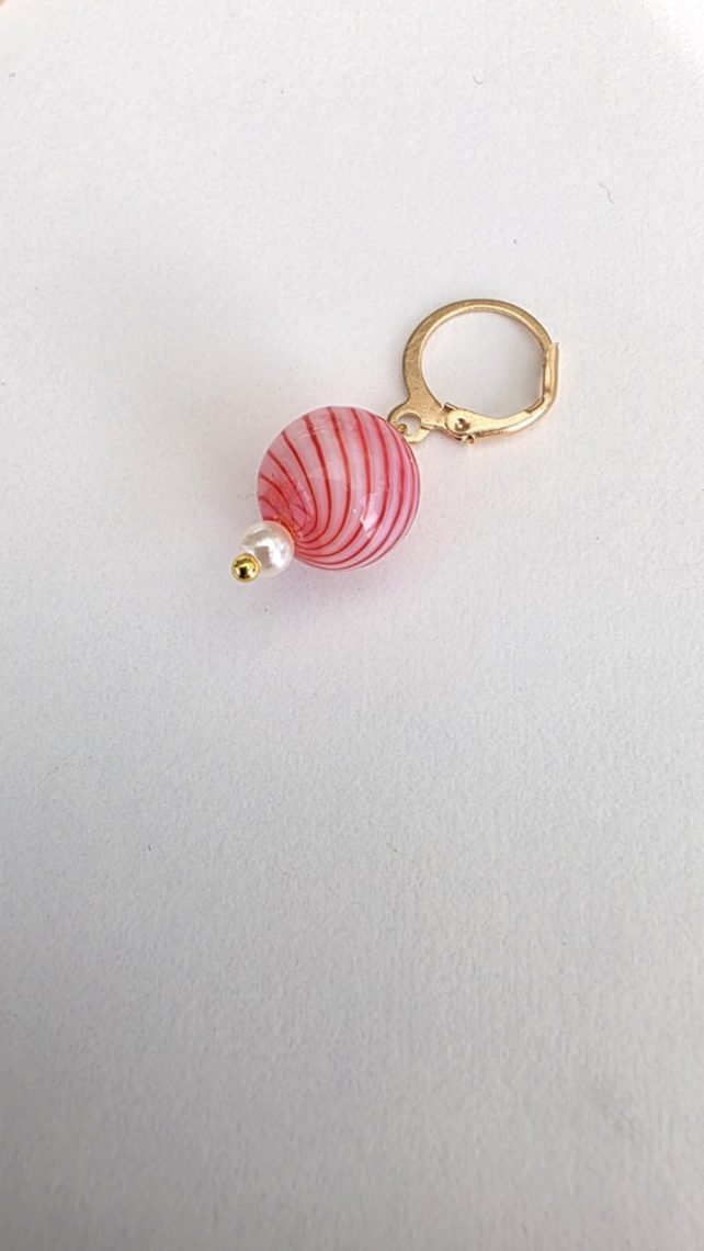 Håndlavet, forgyldt ørering, enkelt med glasperle