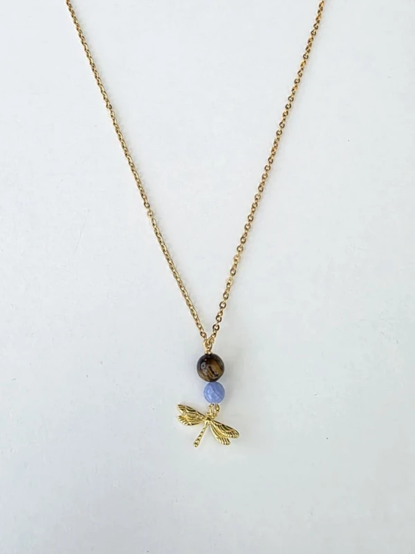 Vandfast forgyldt halskæde, 45 cm. blå med tigereye perle, guldsmed 14k forgyldt, 20×13 mm. Håndlavet