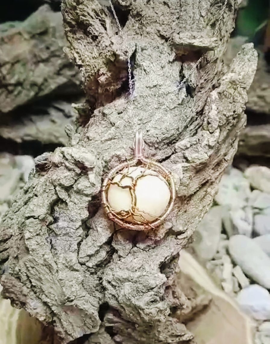 Vedhæng af natursten og omfavnet af det smukke livets træ i kobber