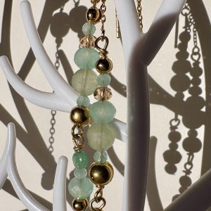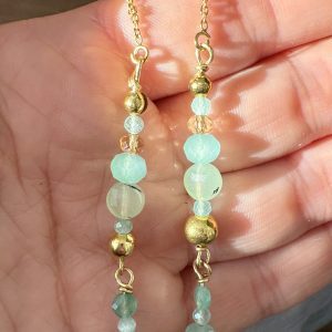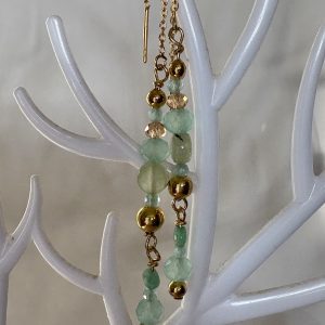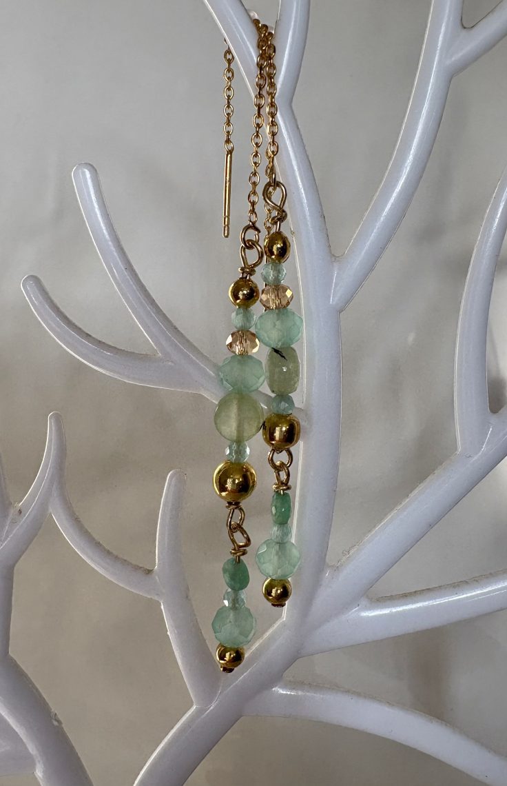 Fine lange øreringe i guldbelagt Sterling sølv og grønne perler.